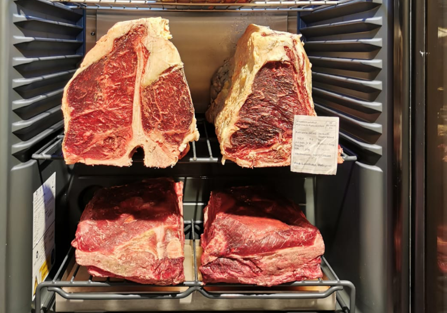 Dabei wird das Fleisch bei kontrollierter Temperatur und Luftfeuchtigkeit abgehängt.